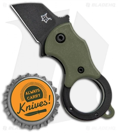 This model of the FOX Knives Mini-TA has an OD green FRN handle and a black wharncliffe blade.
