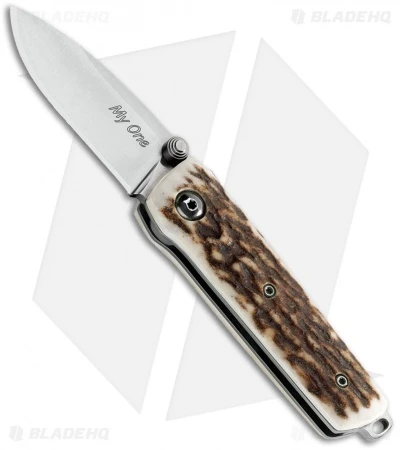 This simplistic design by Fox Knives is the My One Back Lock knife with stag handle scales. The design may look simple but the action of this knife is solid and incredibly reliable. The blade steel is made of 12C27 Sandvik that is highly ranked for edge retention and corrosion resistance. The thumb stud opens the knife easily and at the butt of the knife is a lanyard hole for carrying.