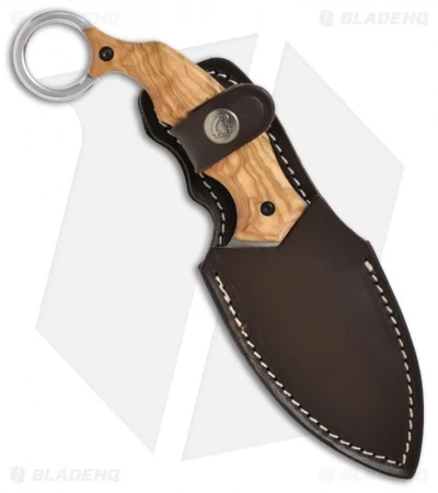 The Rich Derespina designed Fox Parong Karambit knife is a beautifully crafted piece from Maniago Italy. It features a wide profile N690Co cobalt vanadium stainless steel blade. The handle is full-tang with a finger ring pommel and olive wood scales. The Parong knife comes with a premium leather sheath. This is a well-made piece that you’ll be sure to love.