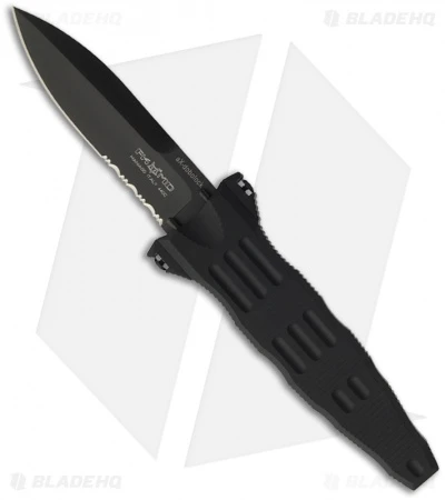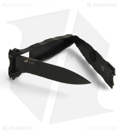 The Fox Knives Dobolock tactical knife features a black titanium nitride coated 440C steel blade and hard anodized aluminum handle with tip-up carry pocket clip.